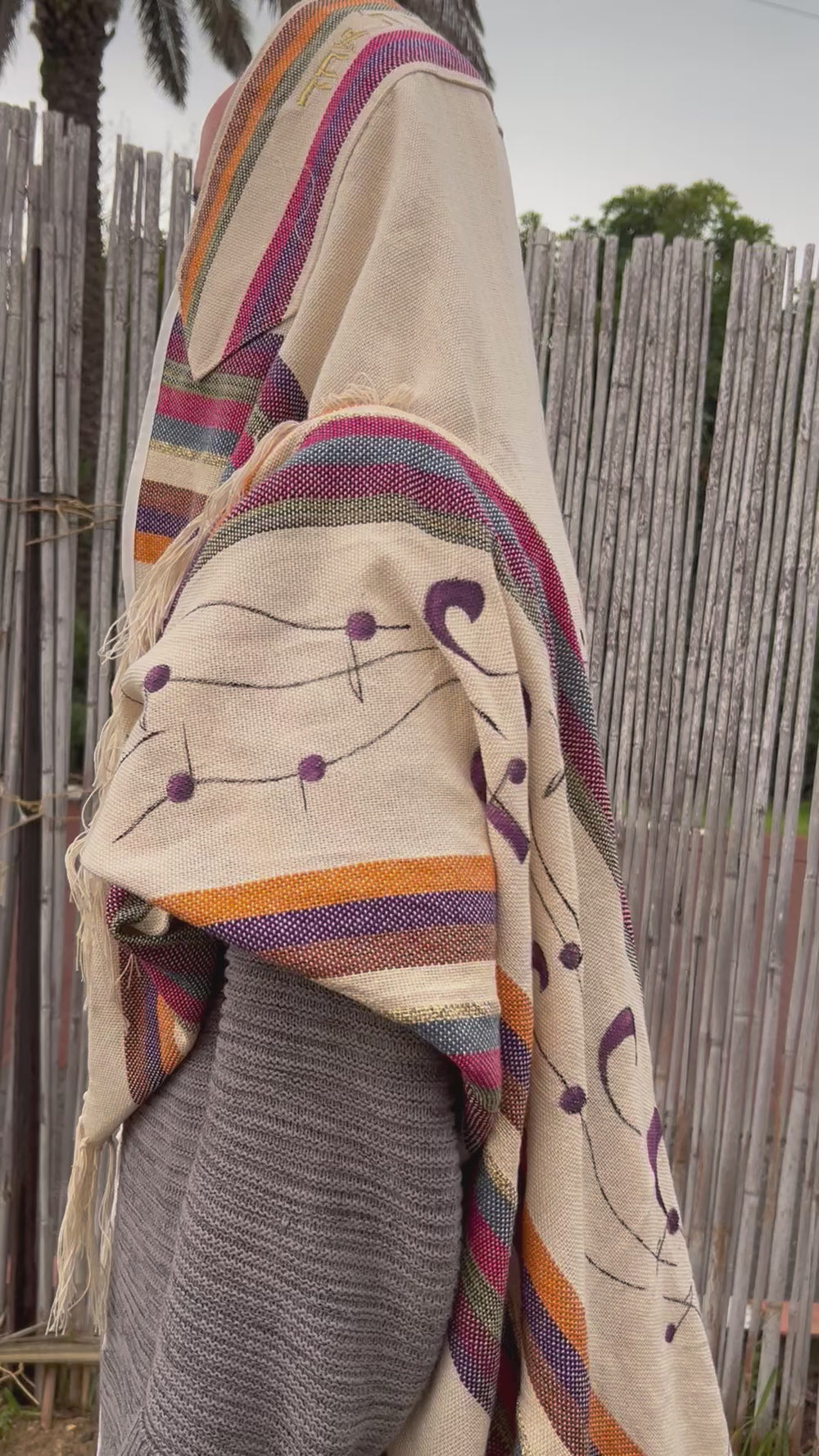 סט טלית בעבודת יד - תווים מוסיקלים צבעוניים